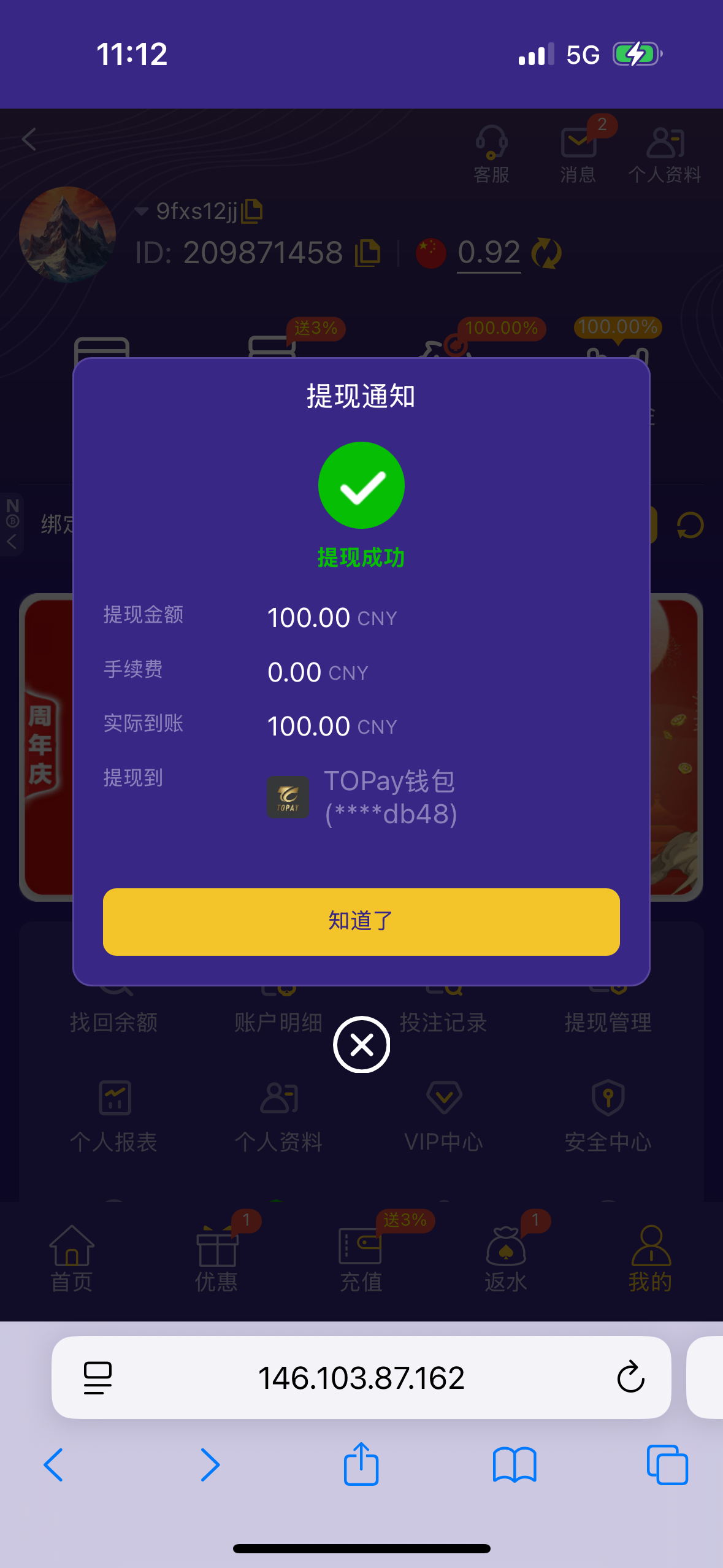 到账情况:未知(禁止充值)