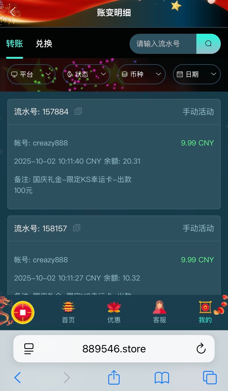 幻影发了9.99国庆礼金,只能玩幸运之卡,有号的快去看看。