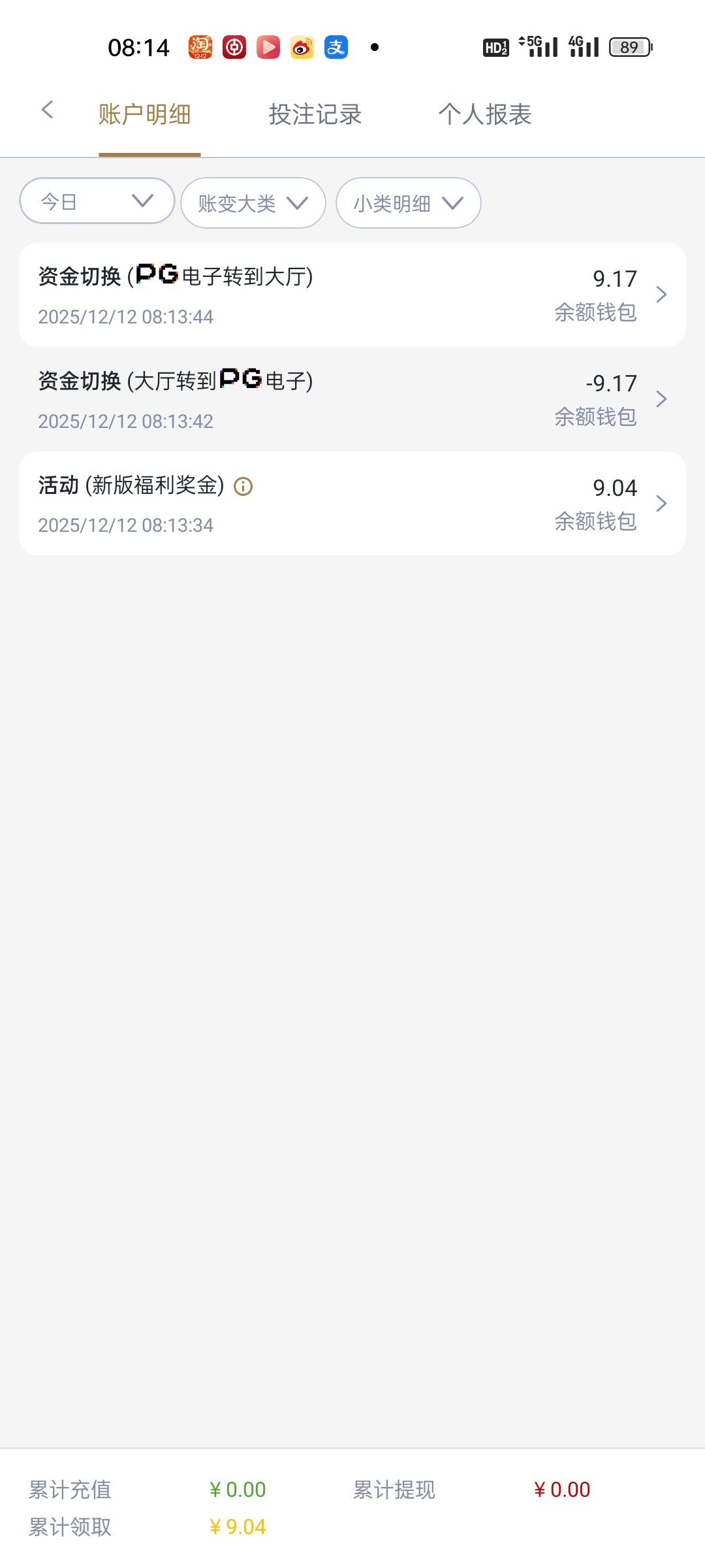 新版彩金历史充值过的应该都有,我有9.04