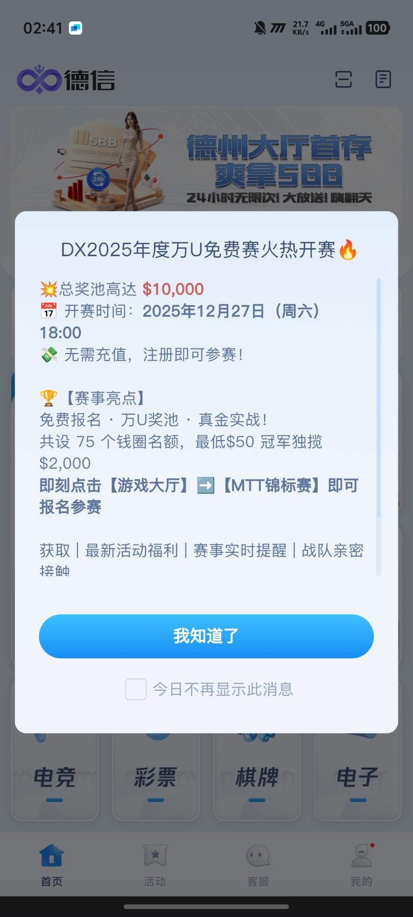 【德信】—✅—免费德州比赛